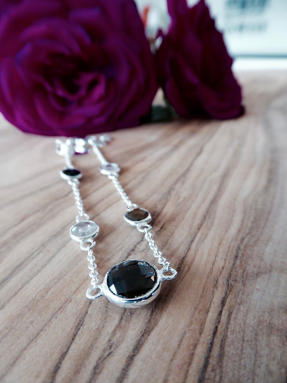 SILBERNES ARMBAND MIT VIELEN SCHWARZEN STEINEN